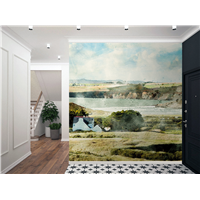 Campagne, Champs, Mer, Soleil, Aquarelle, Bleu, Vert, Blanc